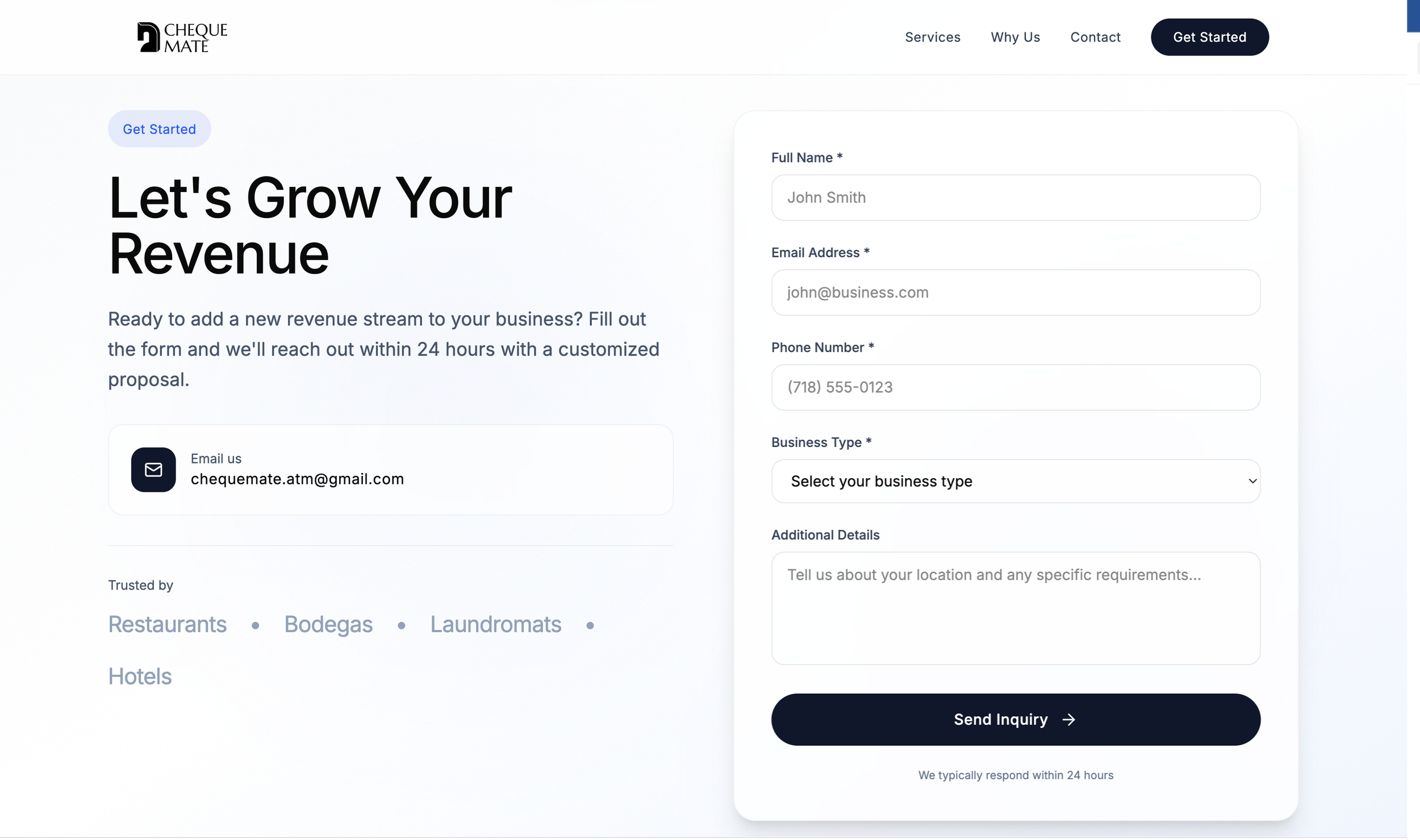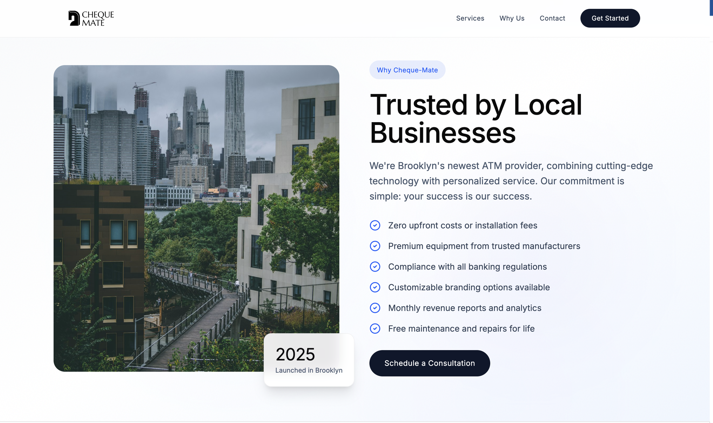 Cheque Mate is a Brooklyn, NY based company supplying businesses with ATMs in order to boost cash sales and drive engagement with local stores. In a somewhat oversaturated market, Cheque Mate seeks to establish itself as a new and reliable resource for communities through communication and trust building.